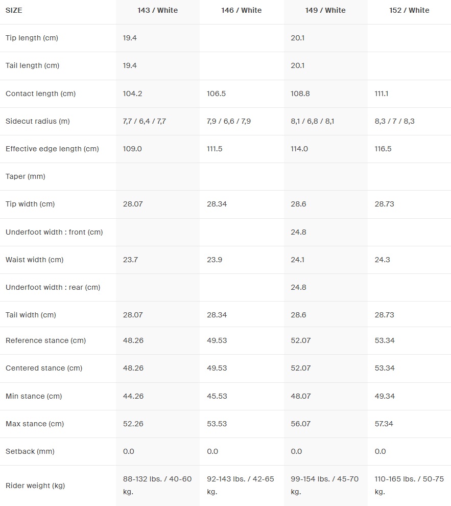 • True Twin – pełna symetria. Taki sam nose i tail, wyważony stance i przewidywalna charakterystyka jazdy zarówno regular, jak i switch. Idealna dla początkujących i freestyle’owych progresów.